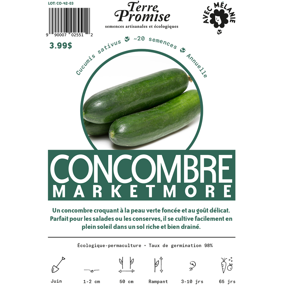 Envie d’un concombre sans amertume? Voici le Concombre Marketmore! Cette variété hâtive à la peau fine et à la chair tendre se récolte tout au long de la saison estivale.